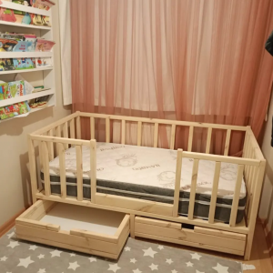 Montessori yaklaşımına uygun olarak tasarladığımız çocuk karyolaları ve diğer mobilyalar, çocuğunuzun kendi yatağına kolayca girip çıkabileceği, oyun oynarken özgürce hareket edebileceği ergonomik ve erişilebilir bir yapıdadır.